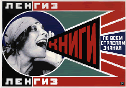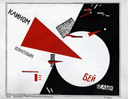 ![]() "Beat the Whites with the red wedge" Lisitskij L. M., 1920 b. 1890, Pochinok; d. 1941, Schodnia, near Moscow >El Lissitzky was born Lazar Markovich Lisitskii on November 23, 1890, in Pochinok, in the Russian province of Smolensk, and grew up in Vitebsk. He pursued architectural studies at the Technische Hochschule in Darmstadt, Germany, from 1909 to 1914, when the outbreak of World War I precipitated his return to Russia. In 1916, he received a diploma in engineering and architecture from the Riga Technological University. |